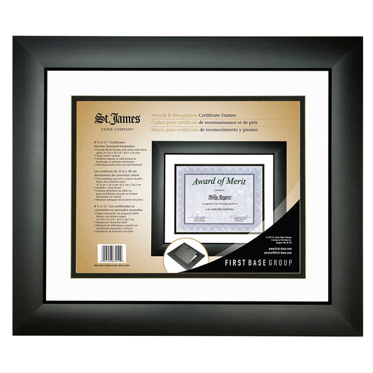 St. James® Certificate/Diploma/Document Frame, 8.5x11", Tuxedo Black with Double Mat White/Black, 83910