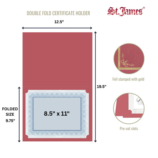 St. James® Certificate Holders/Document Covers/Diploma Holders, Red, Gold Foil Border, Linen Finish, Pack of 5, 83804