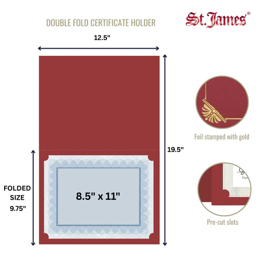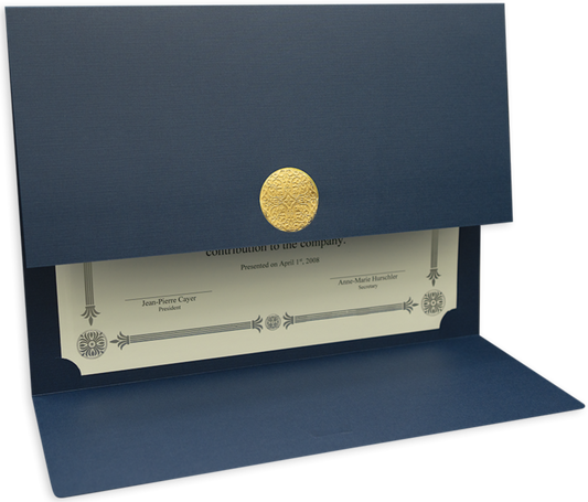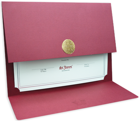 Choose from our range of elegant colors and finishes to match your personal taste or corporate branding. St. James® certificate holders are designed to make a statement, reflecting the significance of the accomplishments they protect.