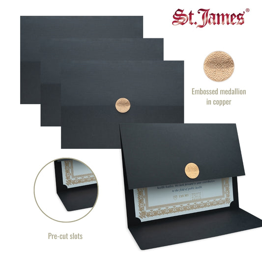 St. James® Elite™ Medallion Fold Certificate Holders, Black Linen with Copper Medallion, Pack of 5, 83570