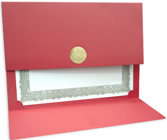 St. James® Elite™ Medallion Fold Certificate Holders, Burgundy Linen with Gold Medallion, Pack of 5, 83533