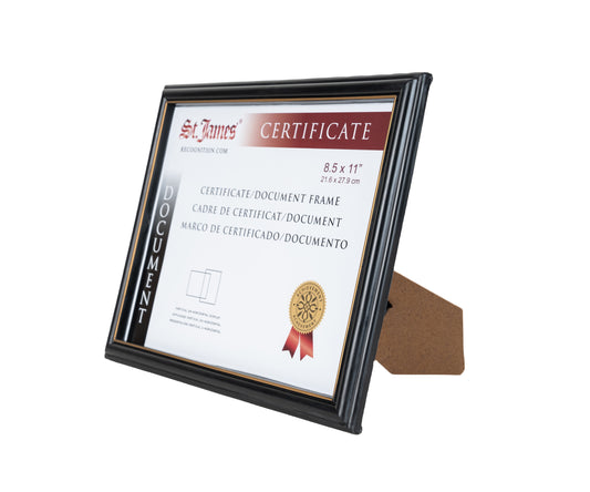 St. James® Certificate/Document/Diploma Frame, 8.5x11", Black with Gold Trim, 83916