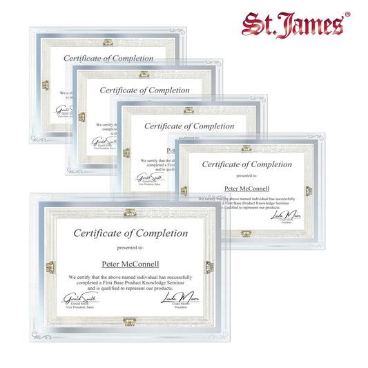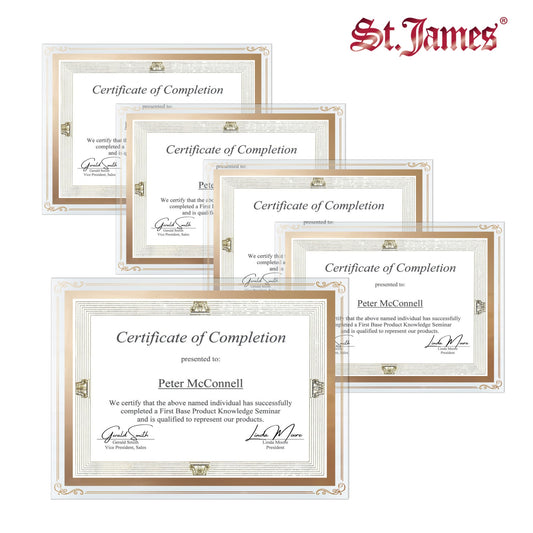 Présentez vos réalisations avec les cadres pour documents/diplômes/certificats St. James®. Ils protègent vos précieux certificats et documents de la poussière, de la décoloration et des dommages, et deviennent une partie intégrante de votre décor,