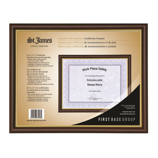 Cadre pour certificat/diplôme/document St. James®, 8,5 x 11 po, cerisier toscan avec garniture dorée, 83903