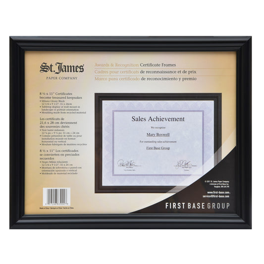 Cadre pour certificat/diplôme/document St. James®, 8,5 x 11 po, Milano Glossy Black, 83904