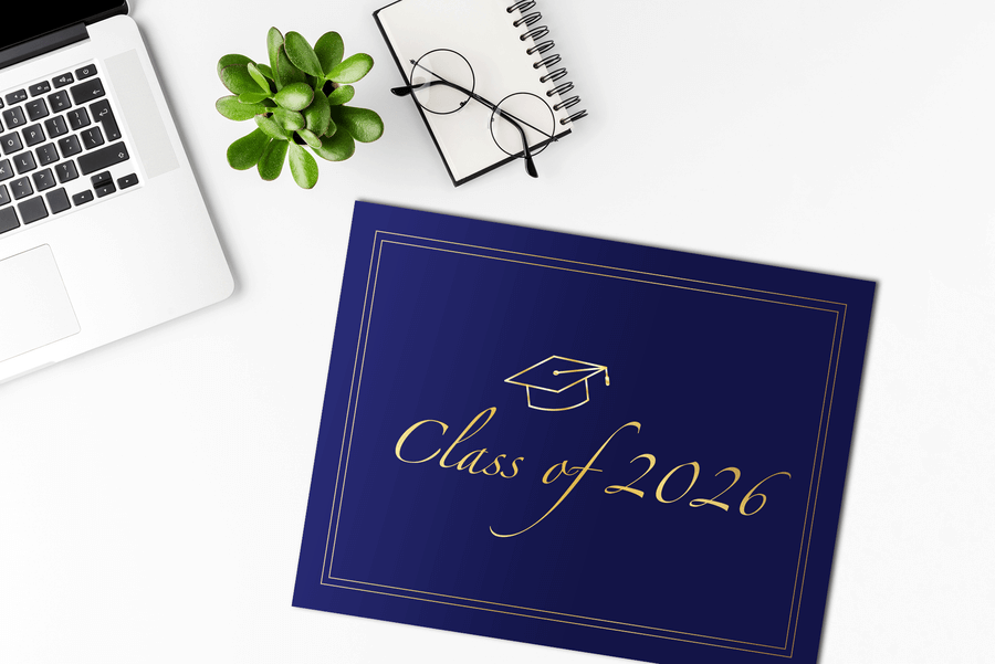 SKU: 583274St. James® Premium Certificate Holder, “Class of 2026” Gold Foil Graduation Design, 8.5 x 11" Document Folder, Navy Blue, Pack of 10, 583274