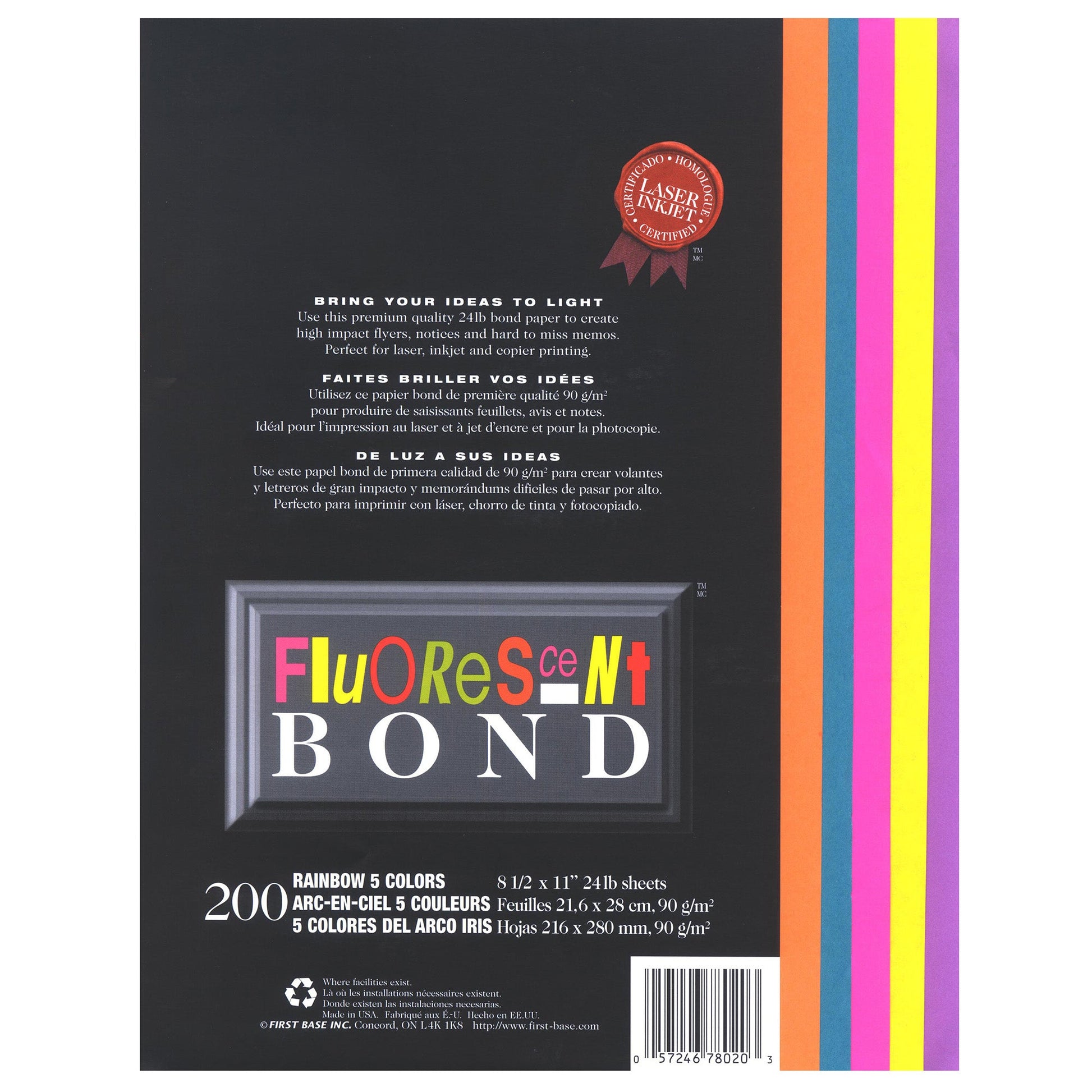 SKU: 78020Papier bond fluorescent St. James®, arc-en-ciel, 5 couleurs, paquet de 200, 78020