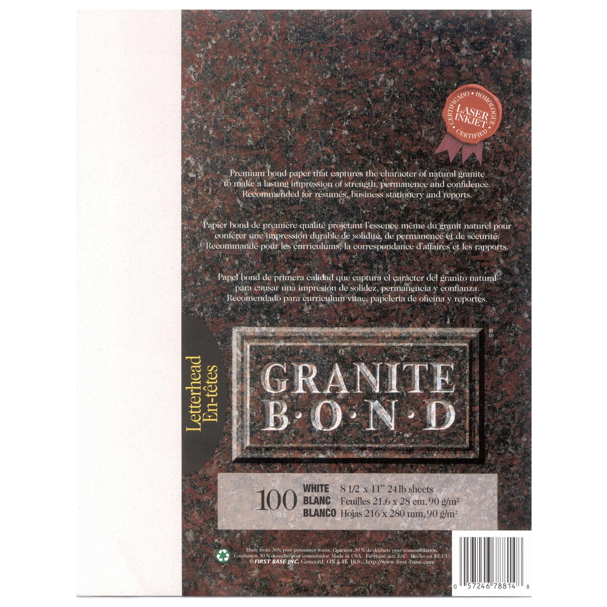 - Papier bond de qualité supérieure qui capture les caractéristiques du granit naturel pour faire une impression durable de force, de permanence et de confiance.