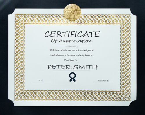 We print your custom logo on high-quality certificates, ensuring a professional look and feel.