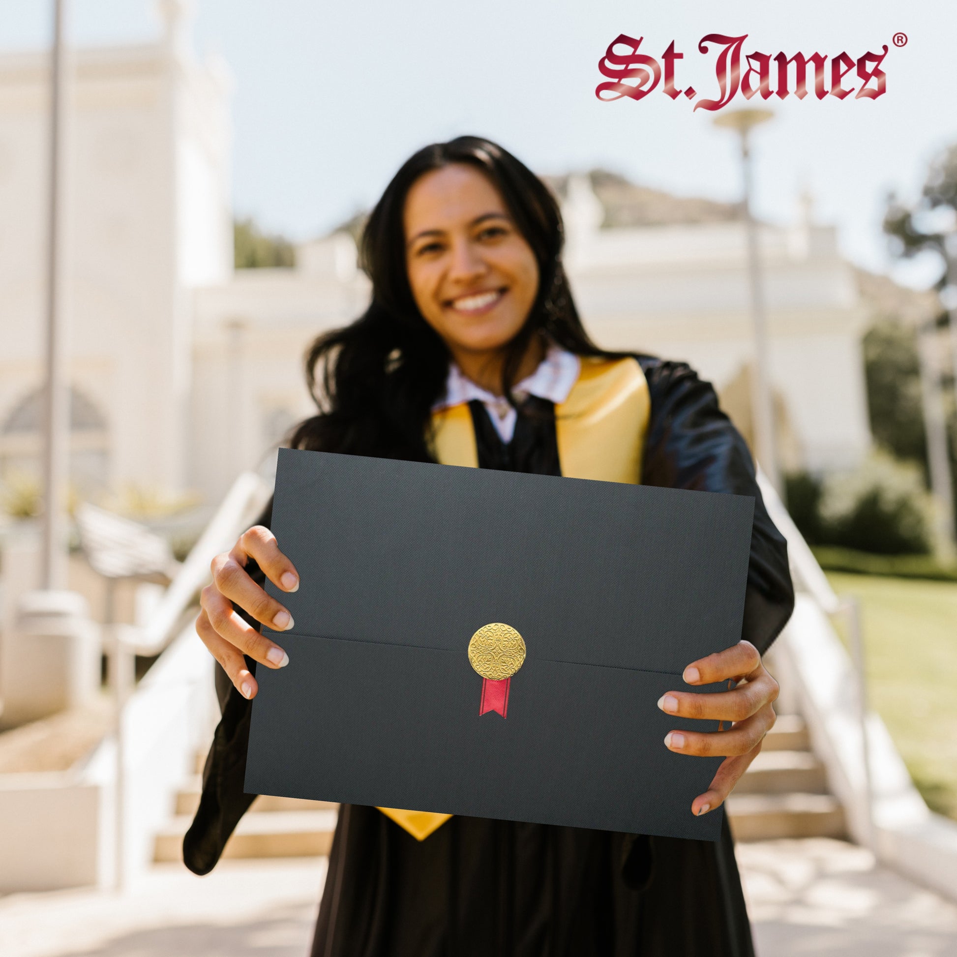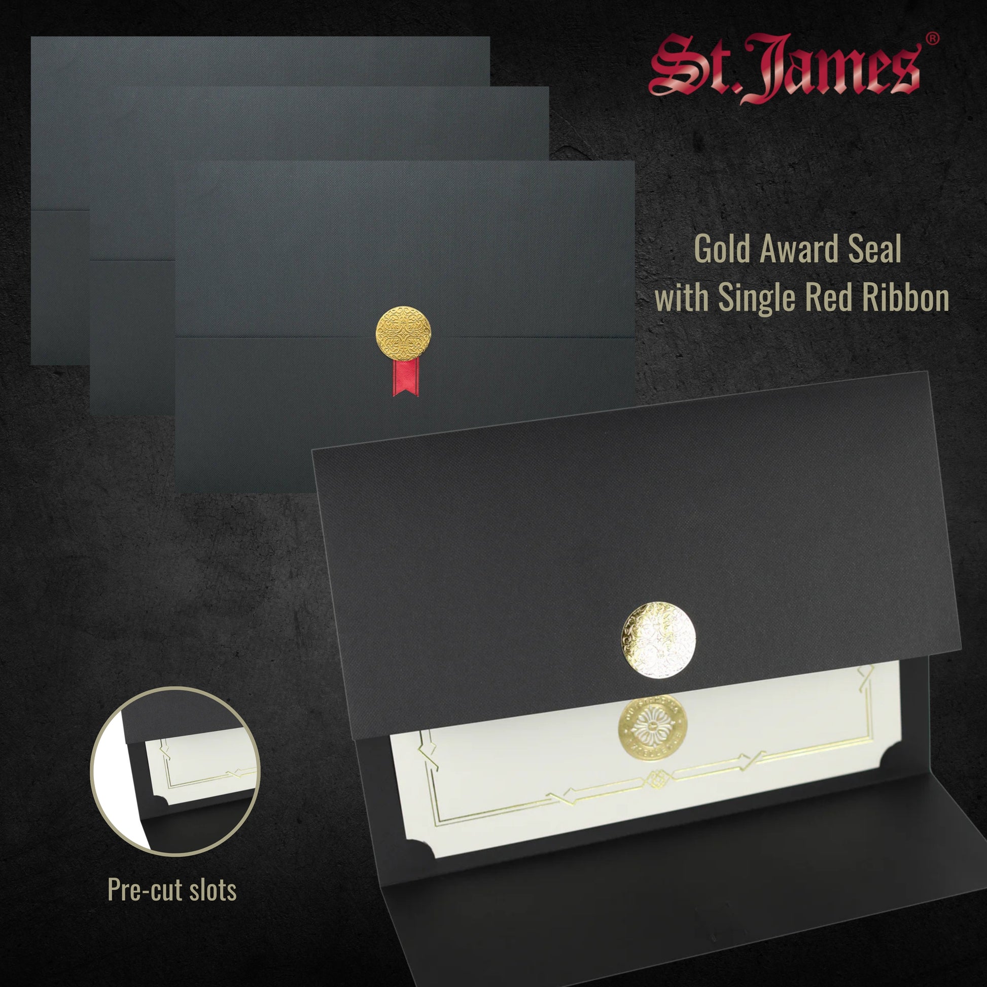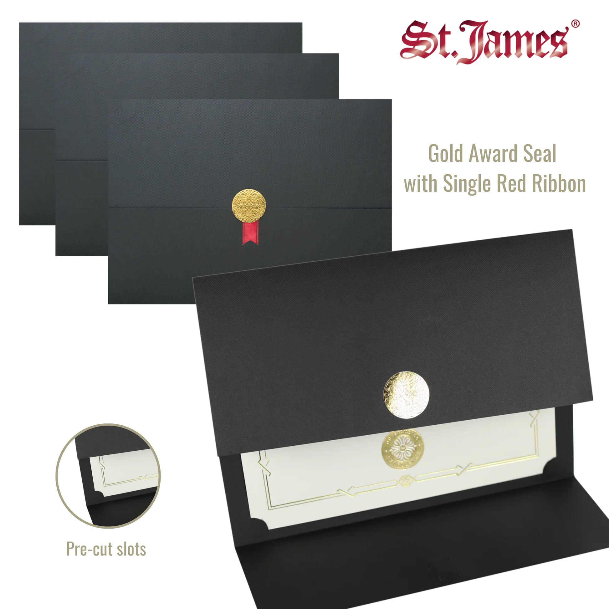 St. James® Certificate Holders/Document Covers/Diploma Holders, Black, Gold Award Seal with Single Red Ribbon, Pack of 5, 83841
