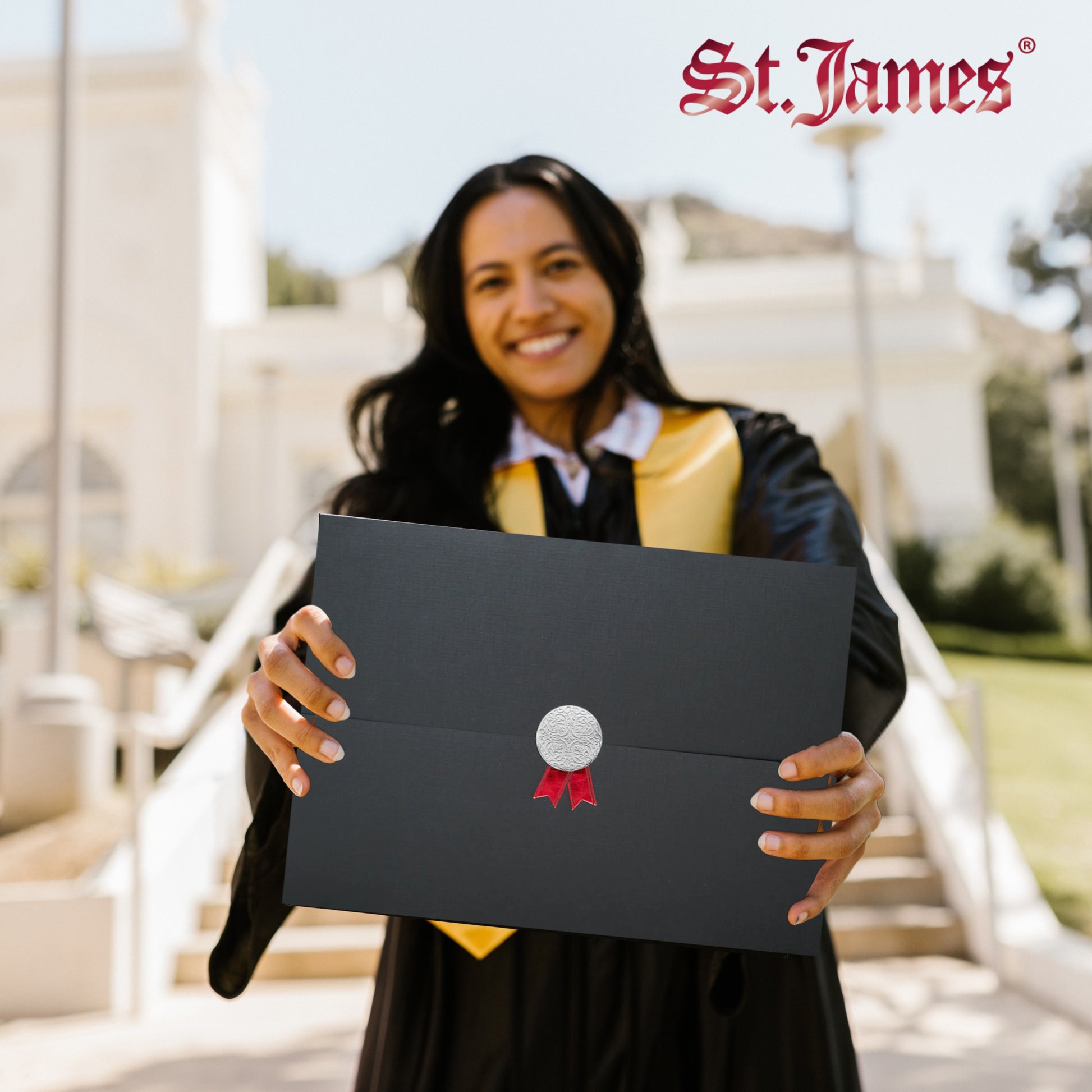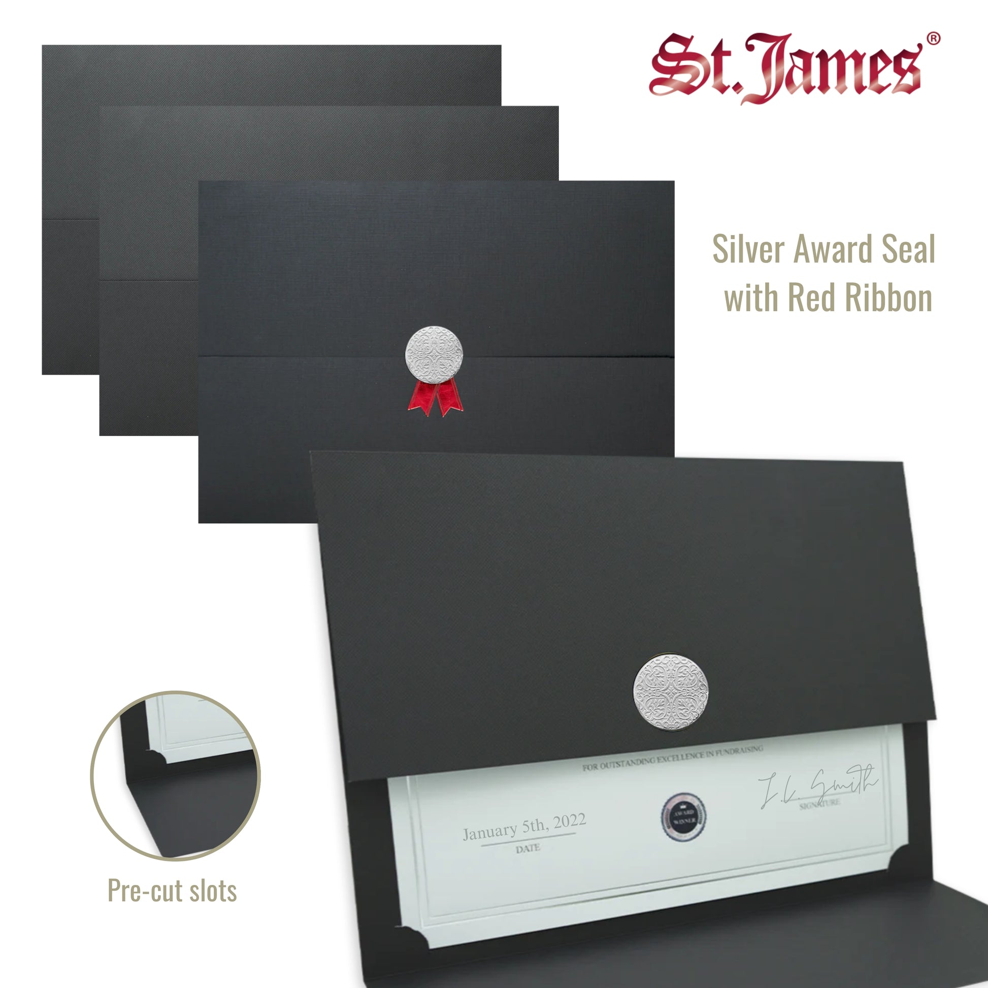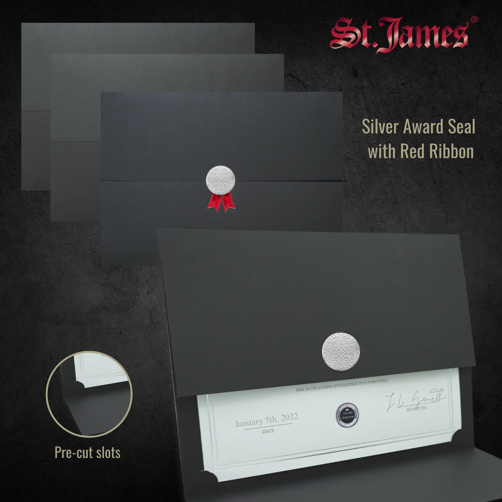 St. James® Certificate Holders/Document Covers/Diploma Holders, Black, Silver Award Seal with Red Ribbon, Pack of 5, 83845