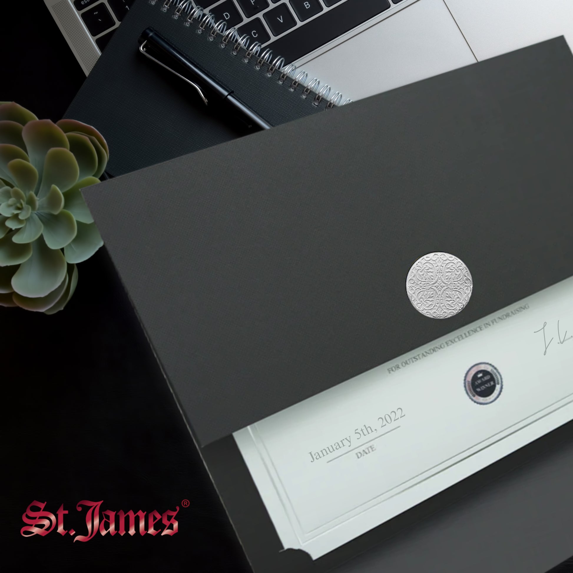 - For a complete award presentation, this certificate holder coordinates with St. James foil certificates and seals