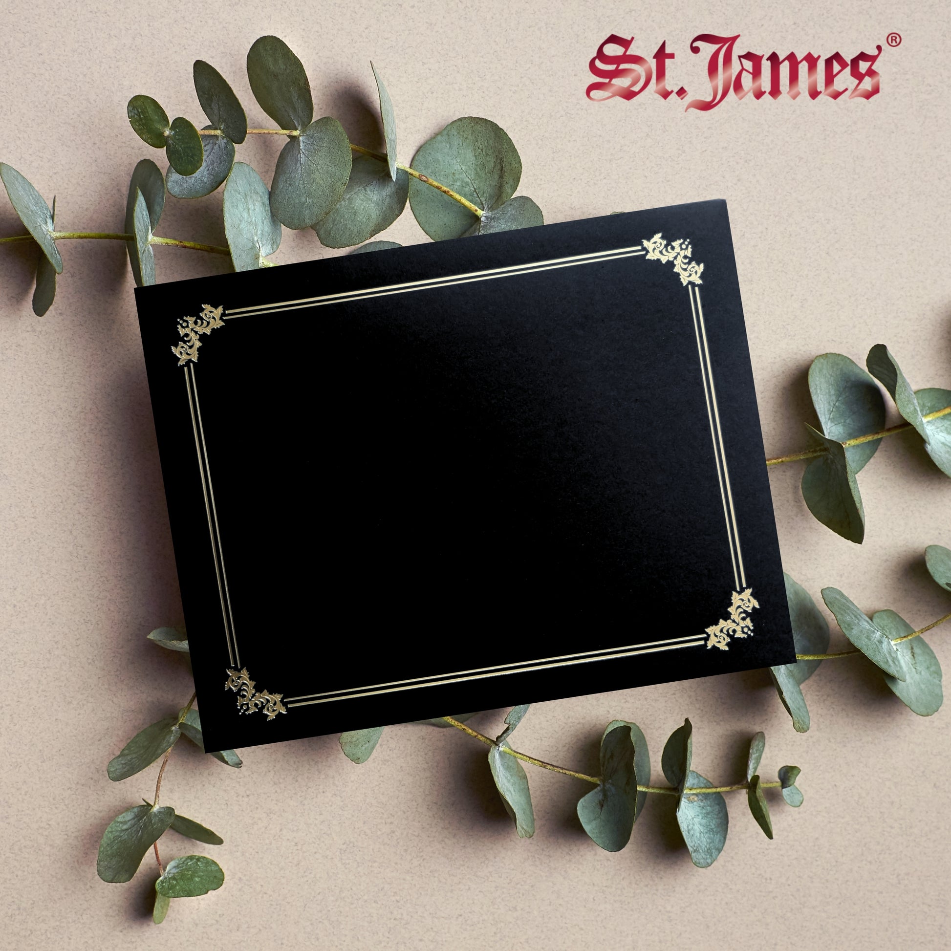 SKU: 83953St. James® Premium Certificate Holders, Double Display Folders for 8.5 x 11" Documents, Black, Gold Foil Border, Pack of 10, 83953