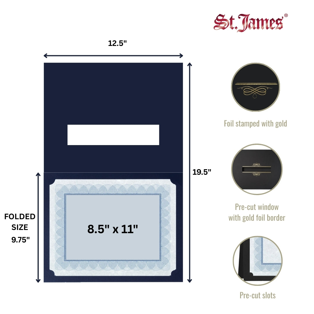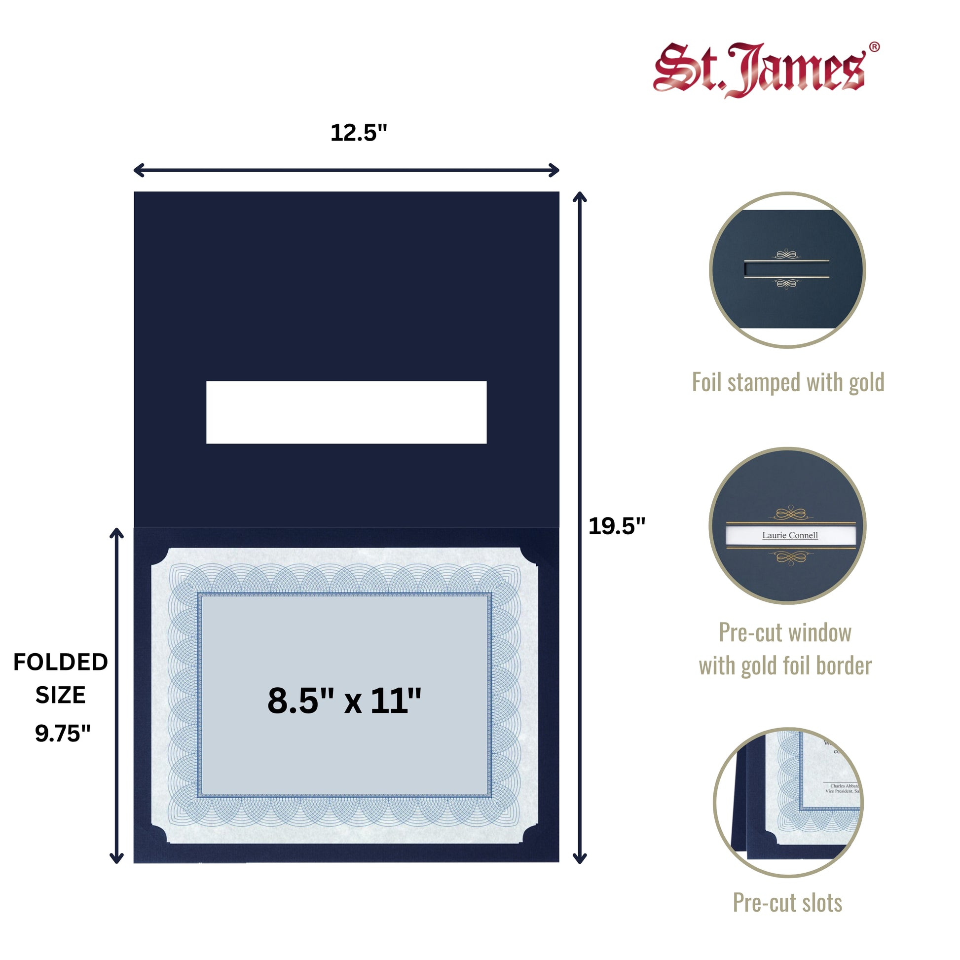 SKU: 83538St. James® Certificate Holders with Window, Linen, Navy Blue, Pack of 5, 83538